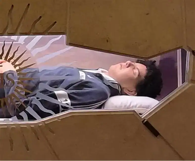 Questo è San Carlo Acutis, esposto alla venerazione dei fedeli nel Santuario della Spoliazione, dove andremo anche noi a trovarlo. Aveva 14 anni ed è diventato Santo…