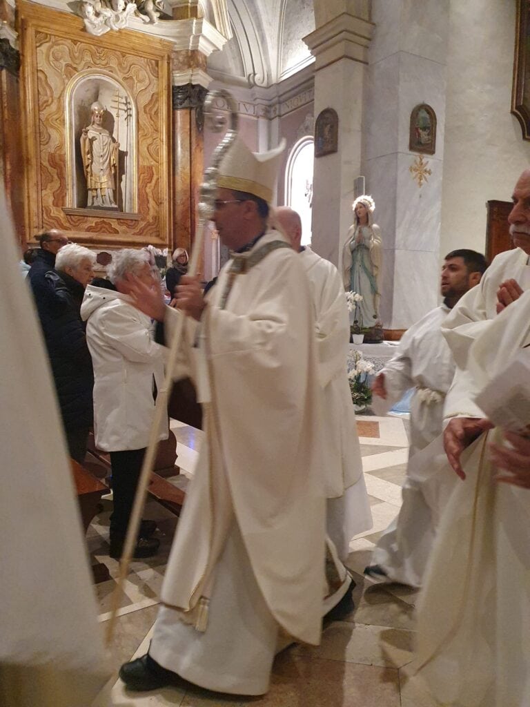 Il Vescovo ha risposto con parole cariche di affetto verso tutti, molto apprezzate dalla gente; dopo la benedizione solenne, è sceso in mezzo alla navata, per salutare i presenti che si sono subito avvicinati al lui.
