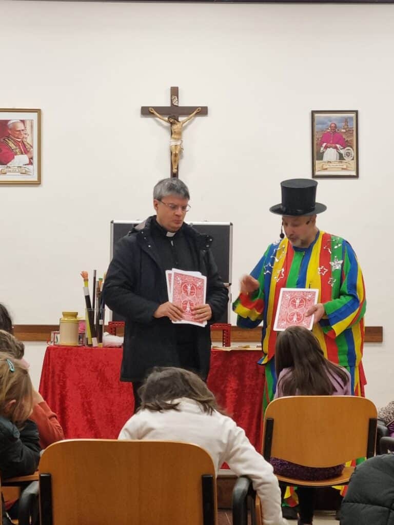 MAGO MAGONE A PITIGLIANO. Evento organizzato dal nostro Oratorio. Sotto gli abiti sgargianti del mago, la tonaca di un frate francescano.