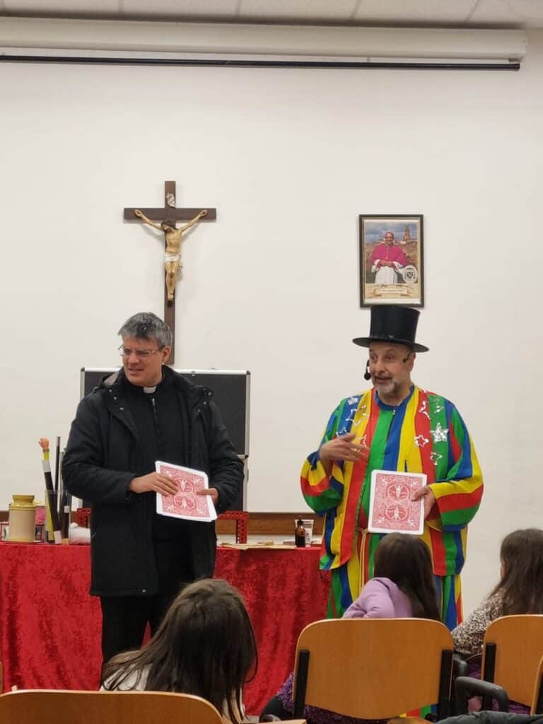 Nelle foto, il momento in cui anche il Parroco è stato coinvolto in un simpatico giochetto…