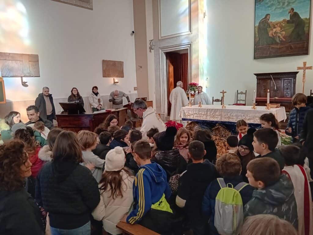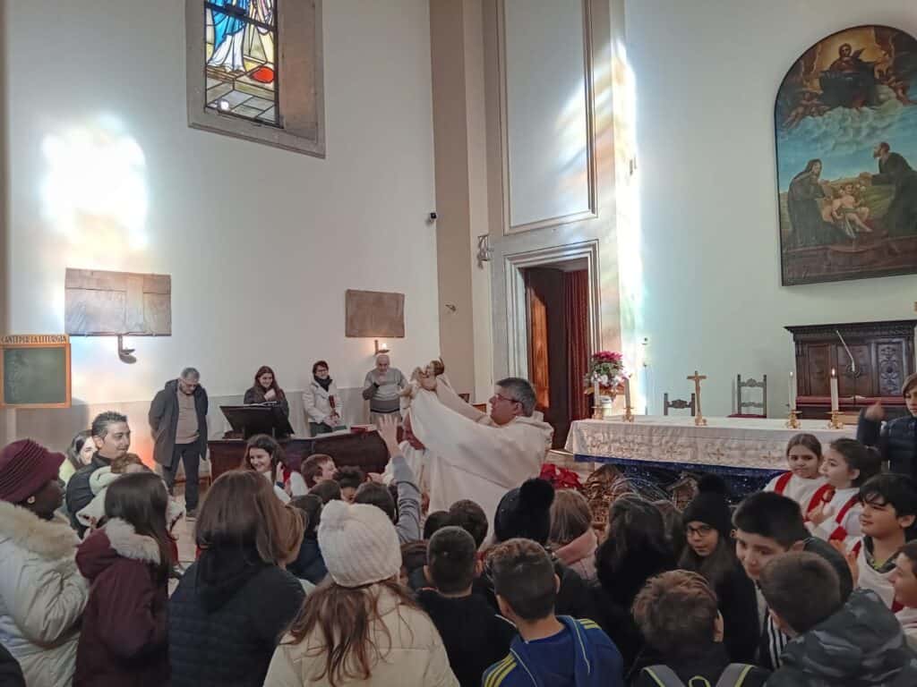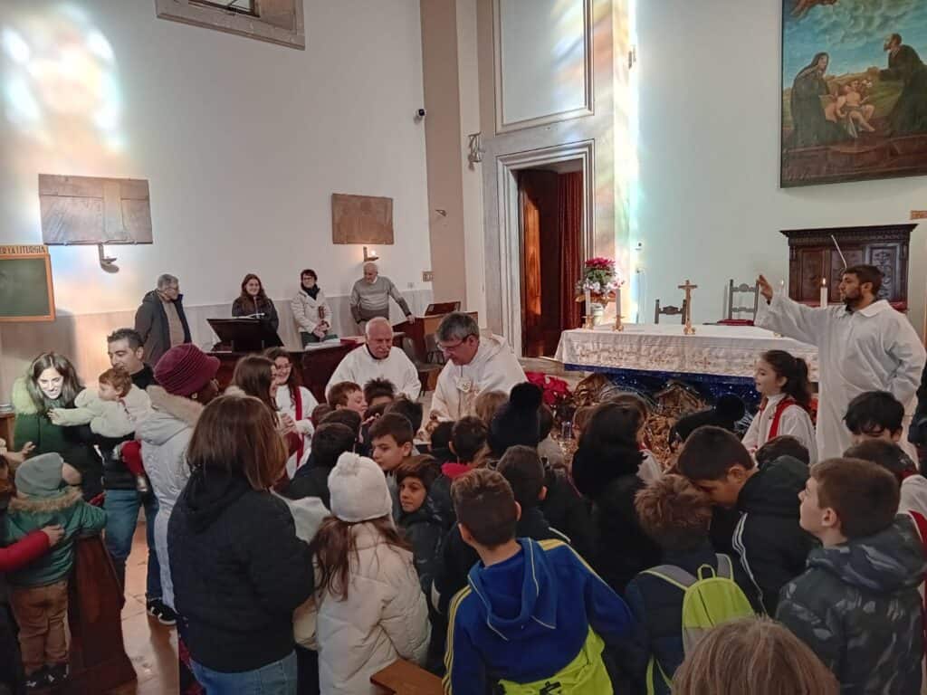La celebrazione si è conclusa con un gesto di grande devozione: il bacio del bambinello Gesù, simbolo dell’amore che unisce ciascuno di noi a Cristo. I canti che hanno accompagnato la messa e l’atmosfera di preghiera che si è respirata in chiesa hanno reso questo momento ancora più speciale, creando una profonda connessione tra i bambini, le catechiste e tutta la comunità.